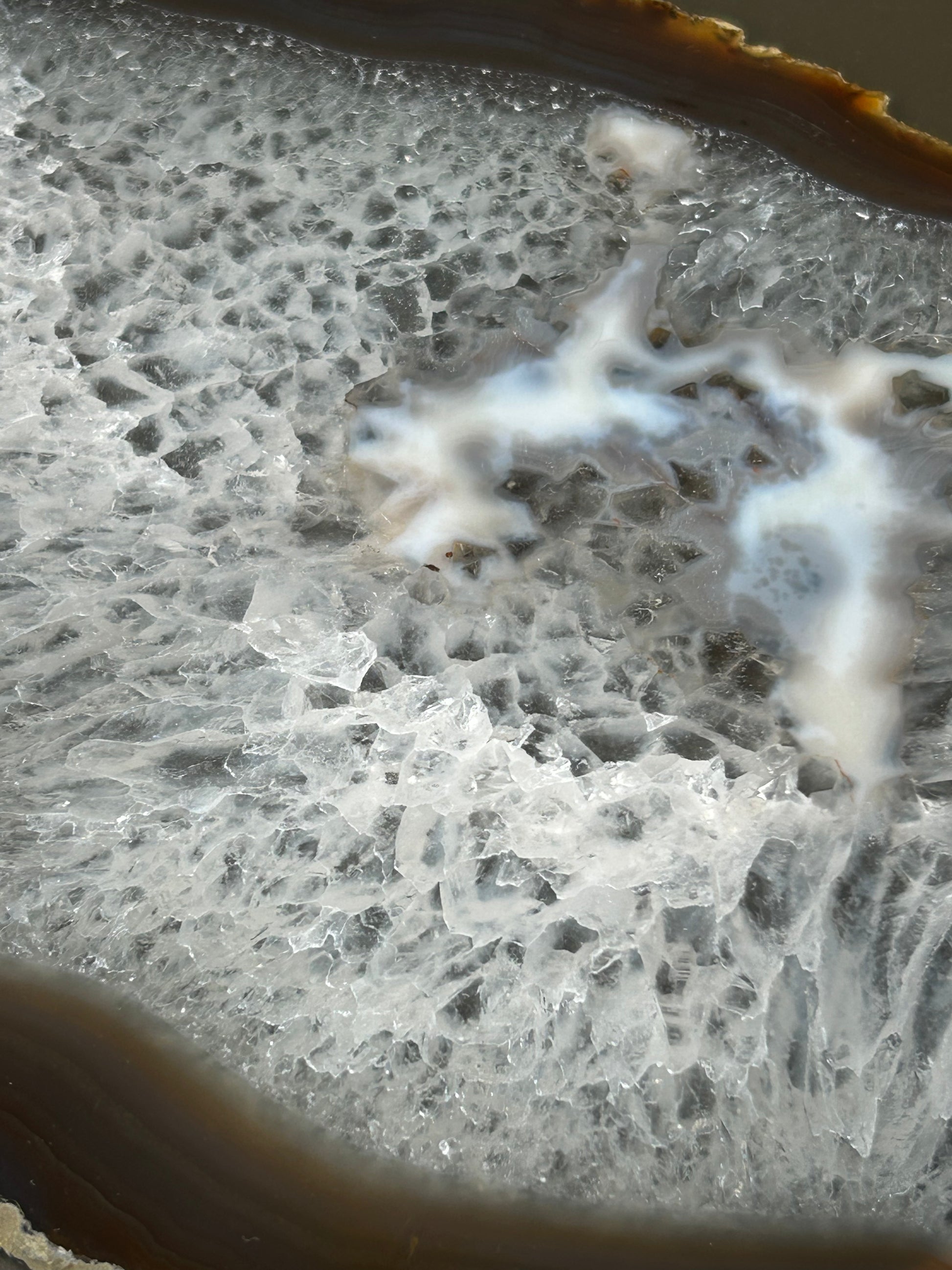 Elegant agate tray with nickel silver handles, combining natural design and practicality.