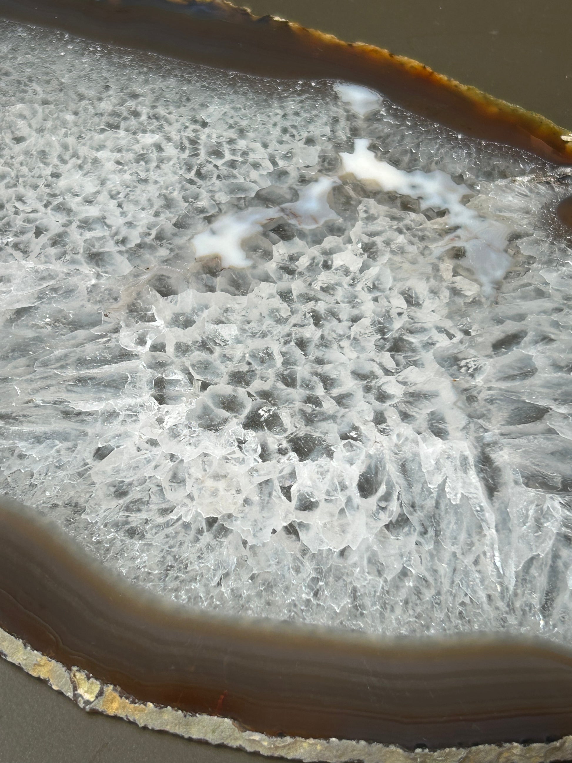 Elegant agate tray with nickel silver handles, combining natural design and practicality.