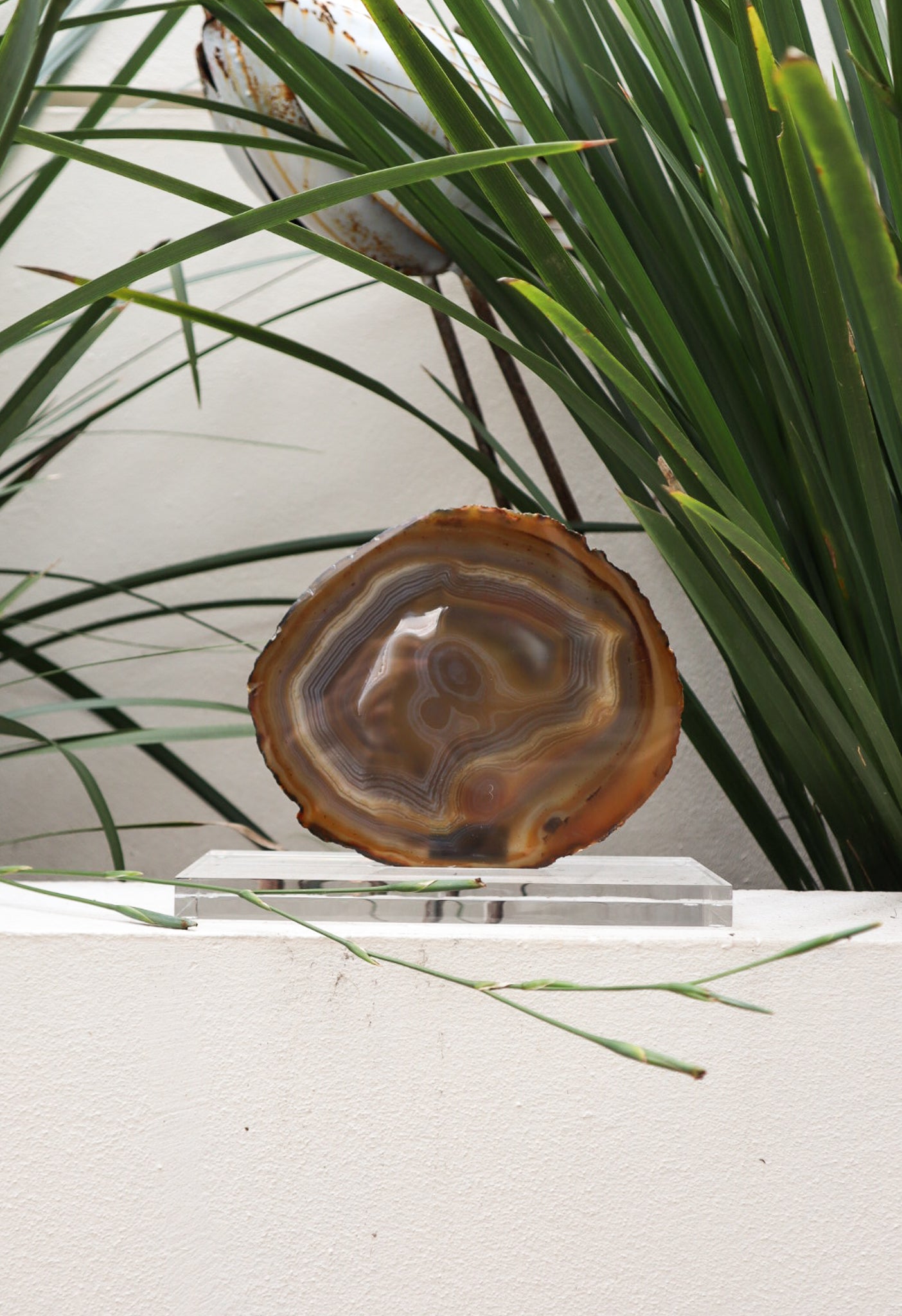 Agate and Quartz Ornament with Acrylic Base.