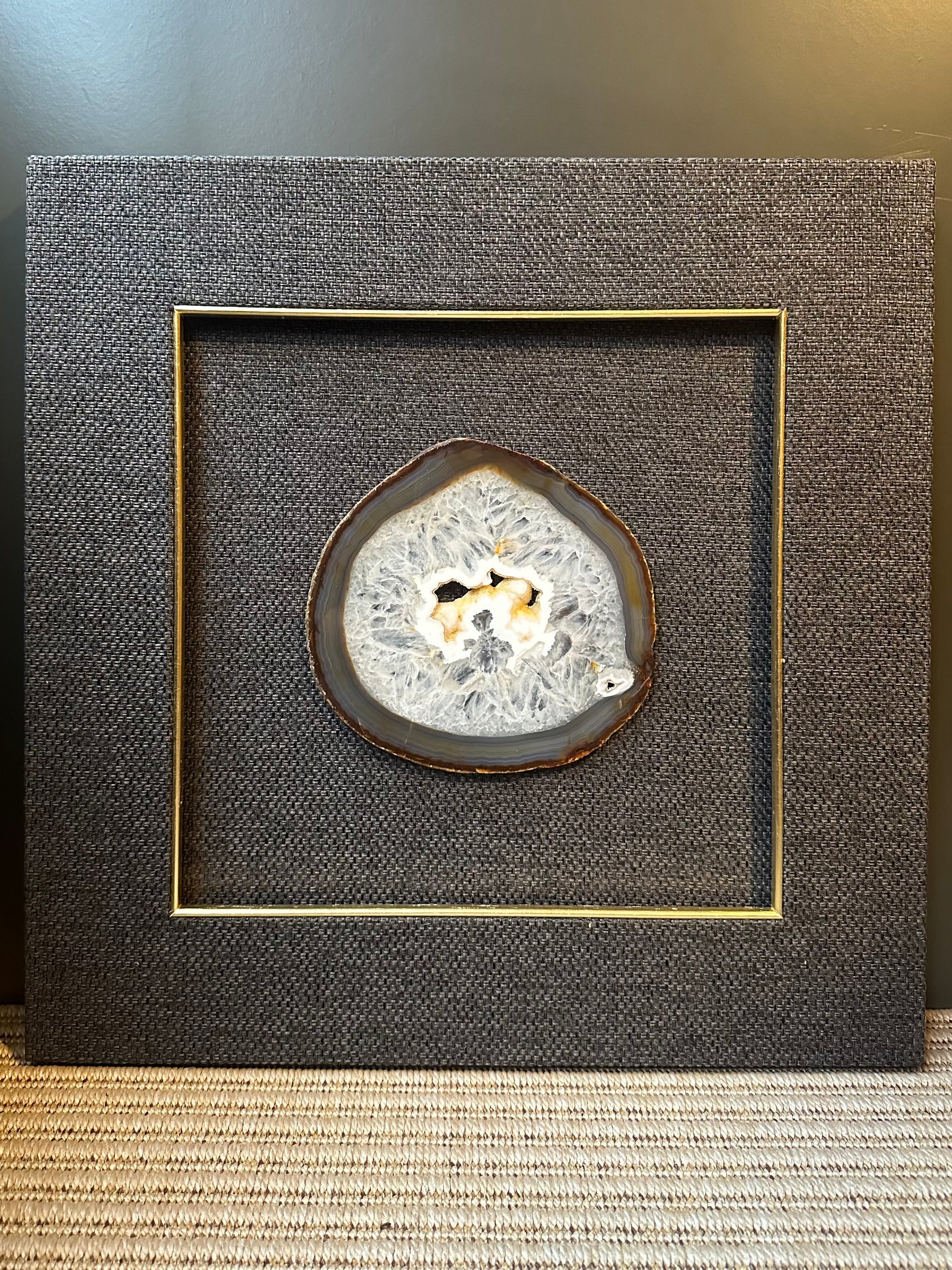 Agate stone framed in linen. Natural art with a sophisticated touch.