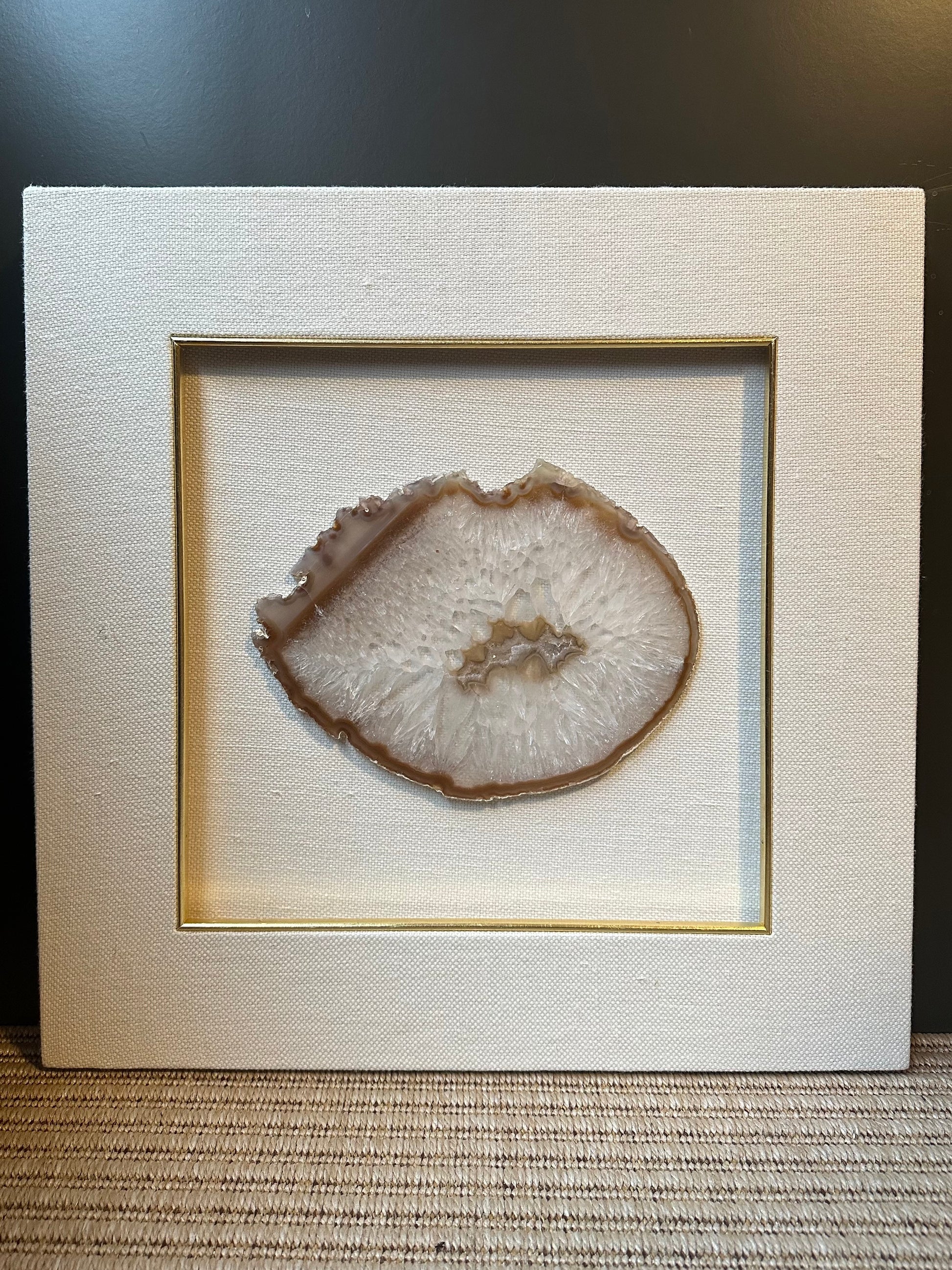 Agate stone framed in linen. Natural art with a sophisticated touch.