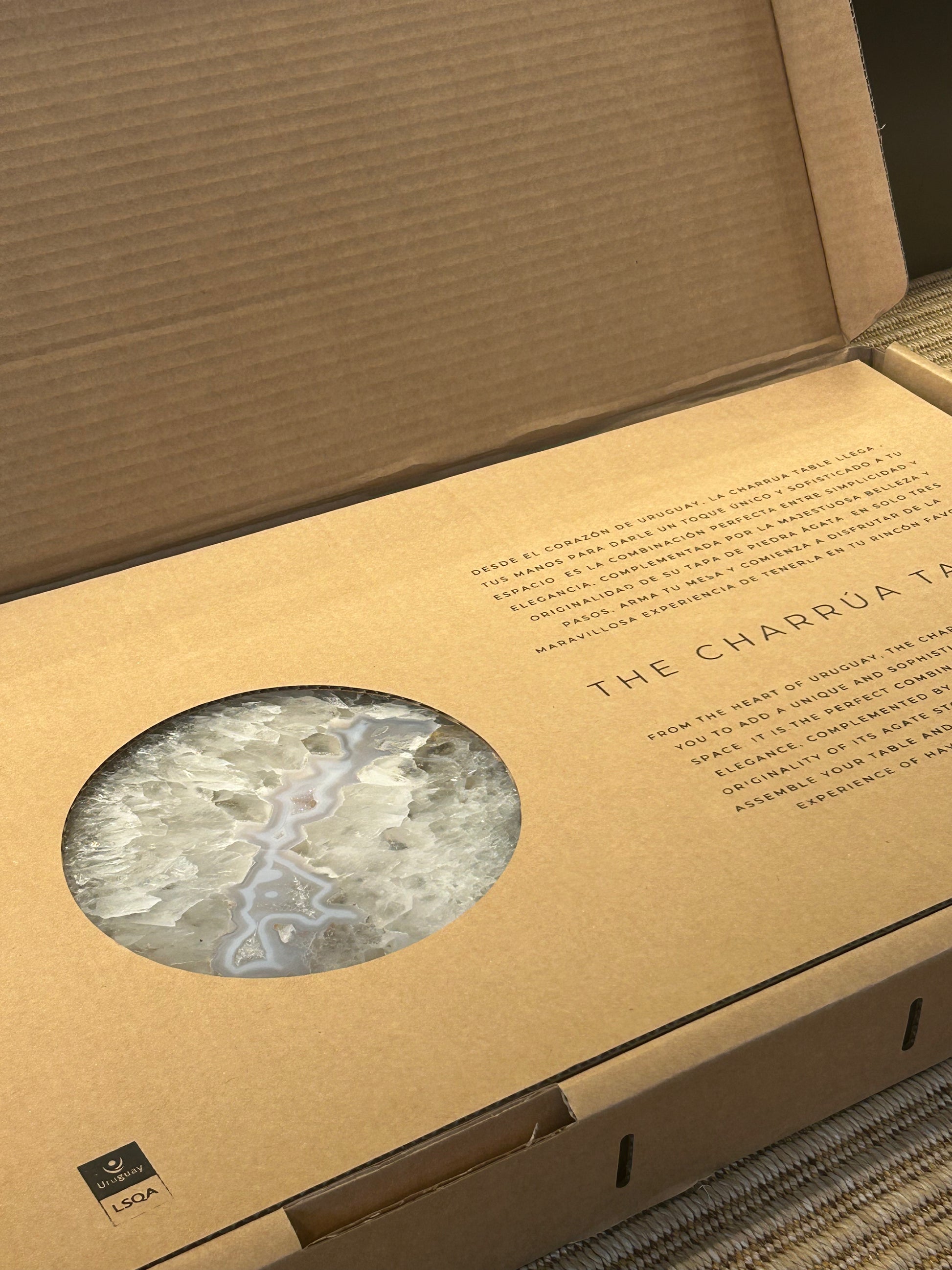 La mesa de Ágata "The Charrua Table", desmontable en 3 piezas, combina la belleza natural de la piedra con la versatilidad de un diseño modular — perfecta y fácil de transportar.