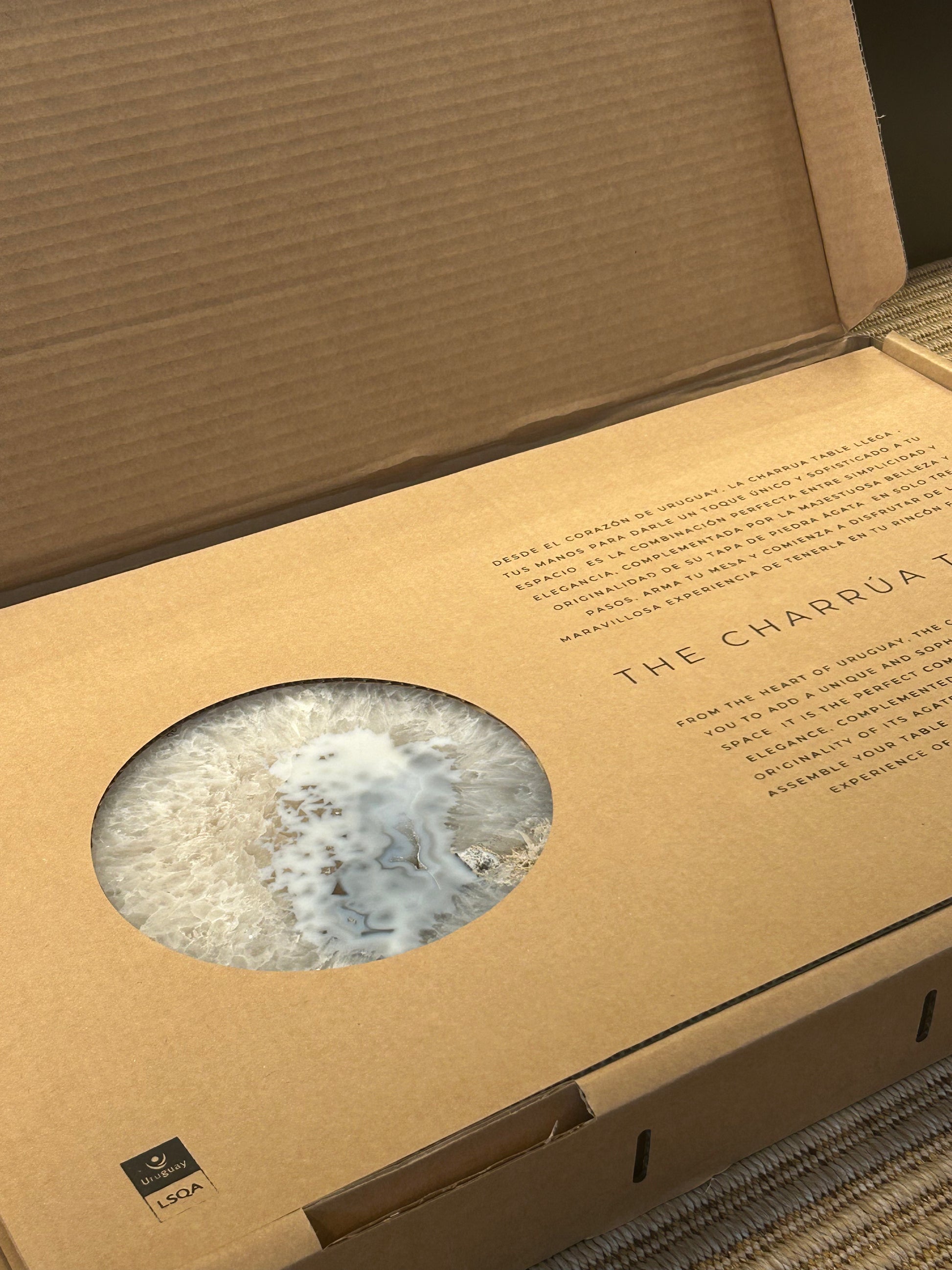 La mesa de Ágata "The Charrua Table", desmontable en 3 piezas, combina la belleza natural de la piedra con la versatilidad de un diseño modular — perfecta y fácil de transportar.