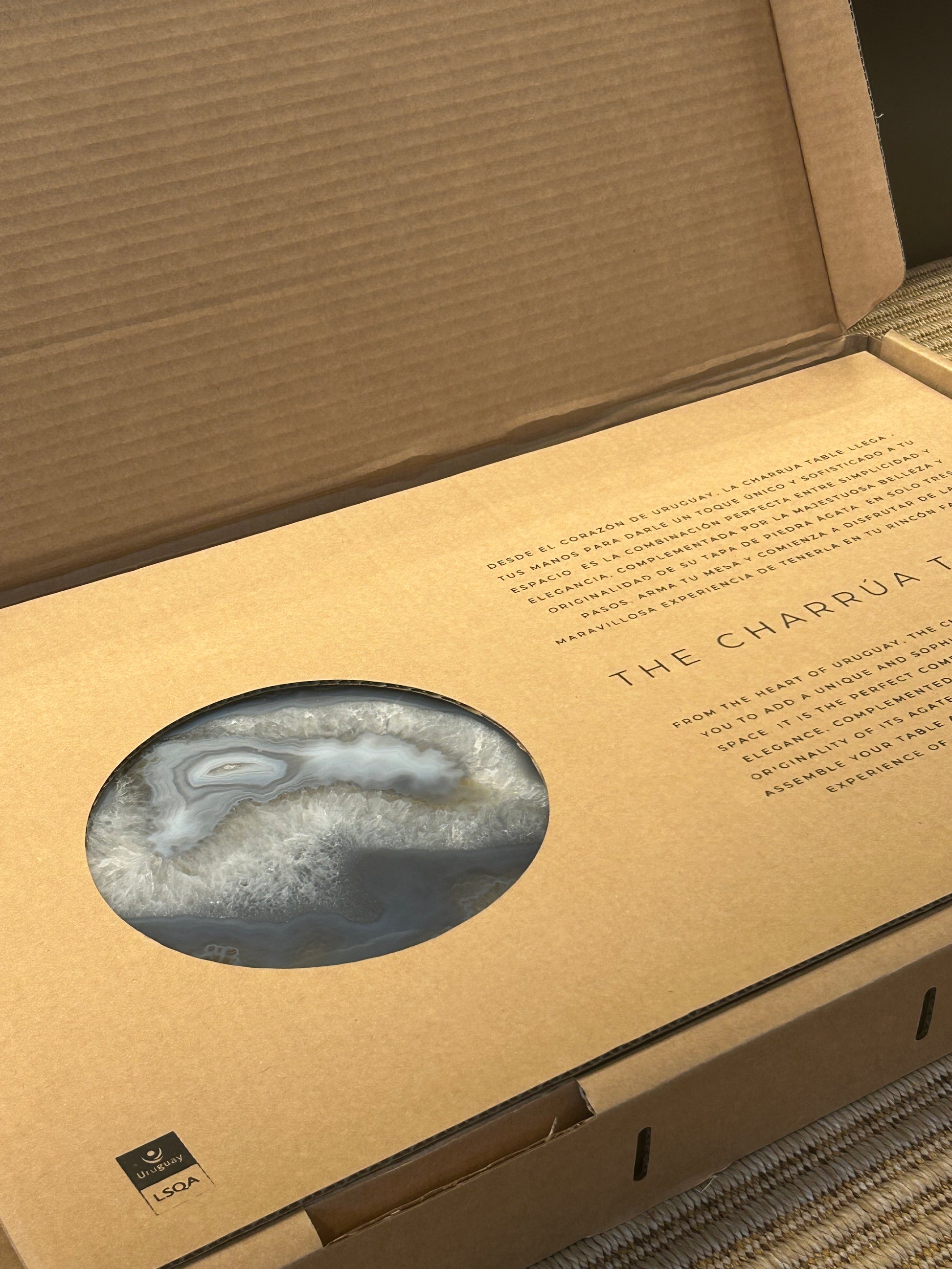 La mesa de Ágata "The Charrua Table", desmontable en 3 piezas, combina la belleza natural de la piedra con la versatilidad de un diseño modular — perfecta y fácil de transportar.